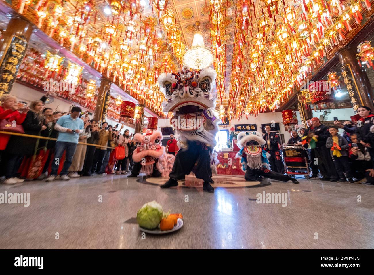 Los Angeles, California, USA. 11th Feb, 2025. Lion dancers perform